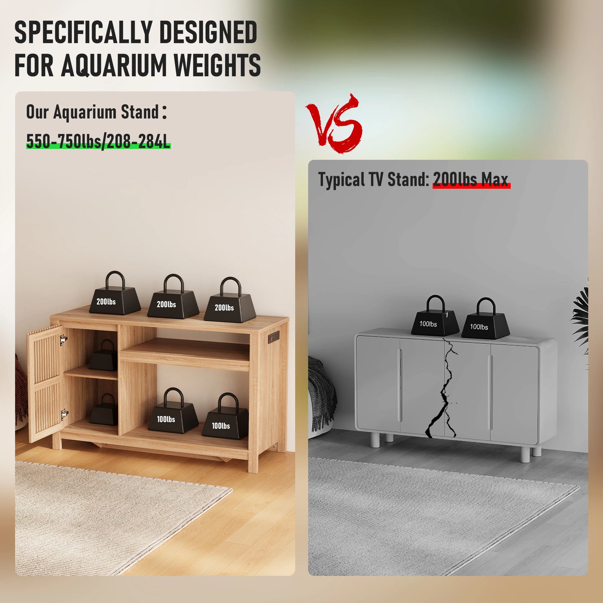 Aquarium Fish Tank Stand with Built-in Power Outlet & Storage Cabinet, Heavy Duty for Turtles