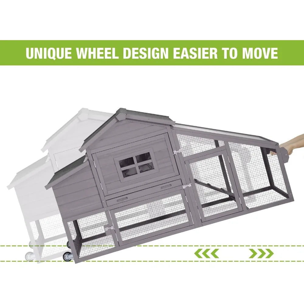 Chicken Coop Mobile Hen House Wooden with Run Poultry Cage with Nesting Box,Movable