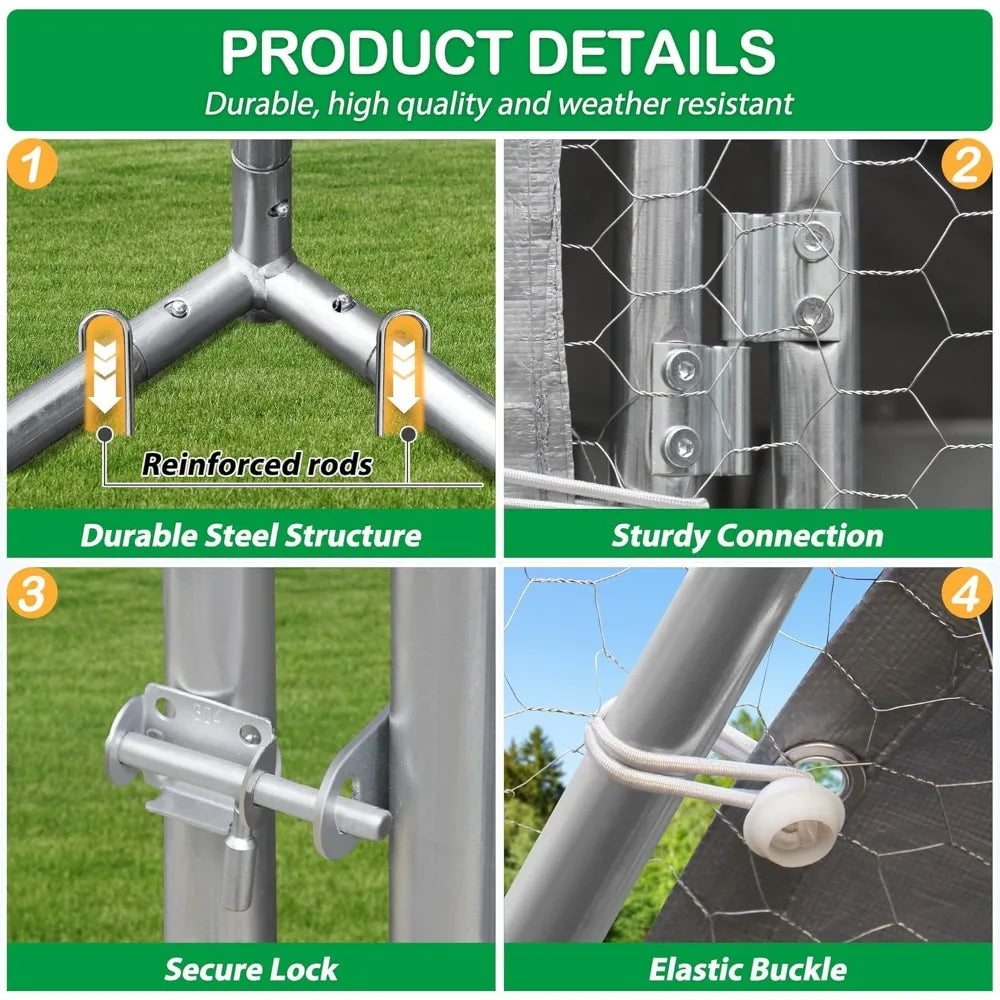 Large Metal Chicken Coop, Walk-in Chicken Run Pen with Waterproof Cover, for Outdoor