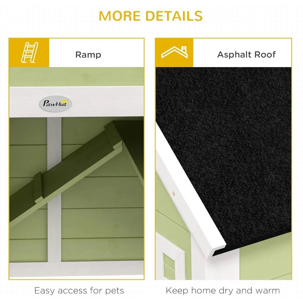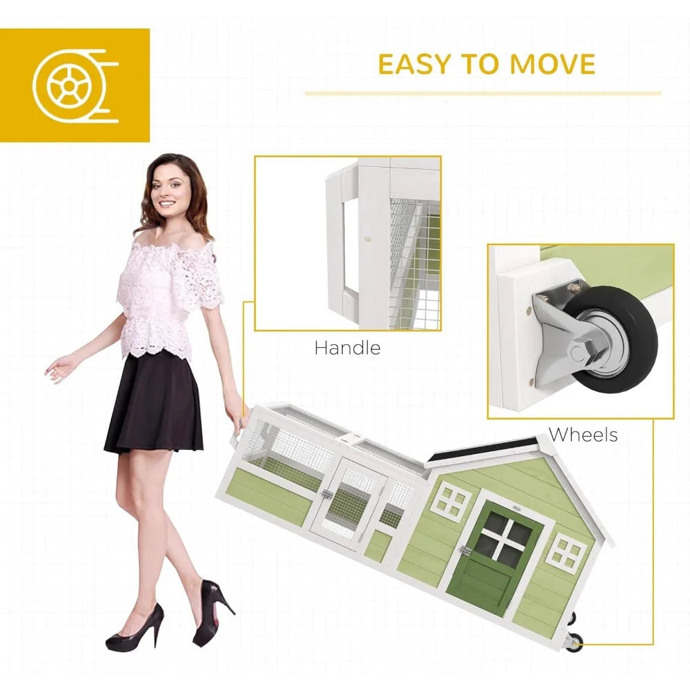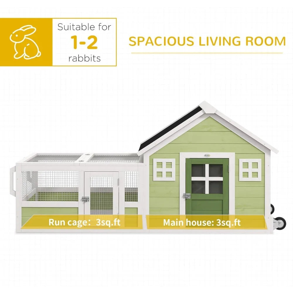 Rabbit Hutch, Outdoor or Guinea Pig Cage with Asphalt Roof, Handle, Wheels, 64 Inch Wooden Bunny Cage